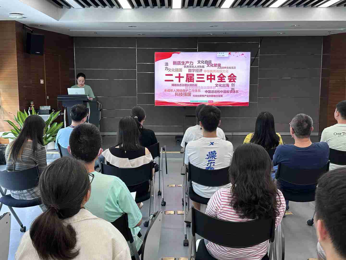 与会人员深入学习《决定》内容。。党的二十届三中全会提出必须增强文化自信,,,发展社会主义先进文化,,,,弘扬革命文化,,传承中华优秀传统文化,,加快适应信息技术迅猛发展新形势,,,,构建更有效力的国际传播体系,,这为广大文化产业工作者指明了奋斗方向。。
