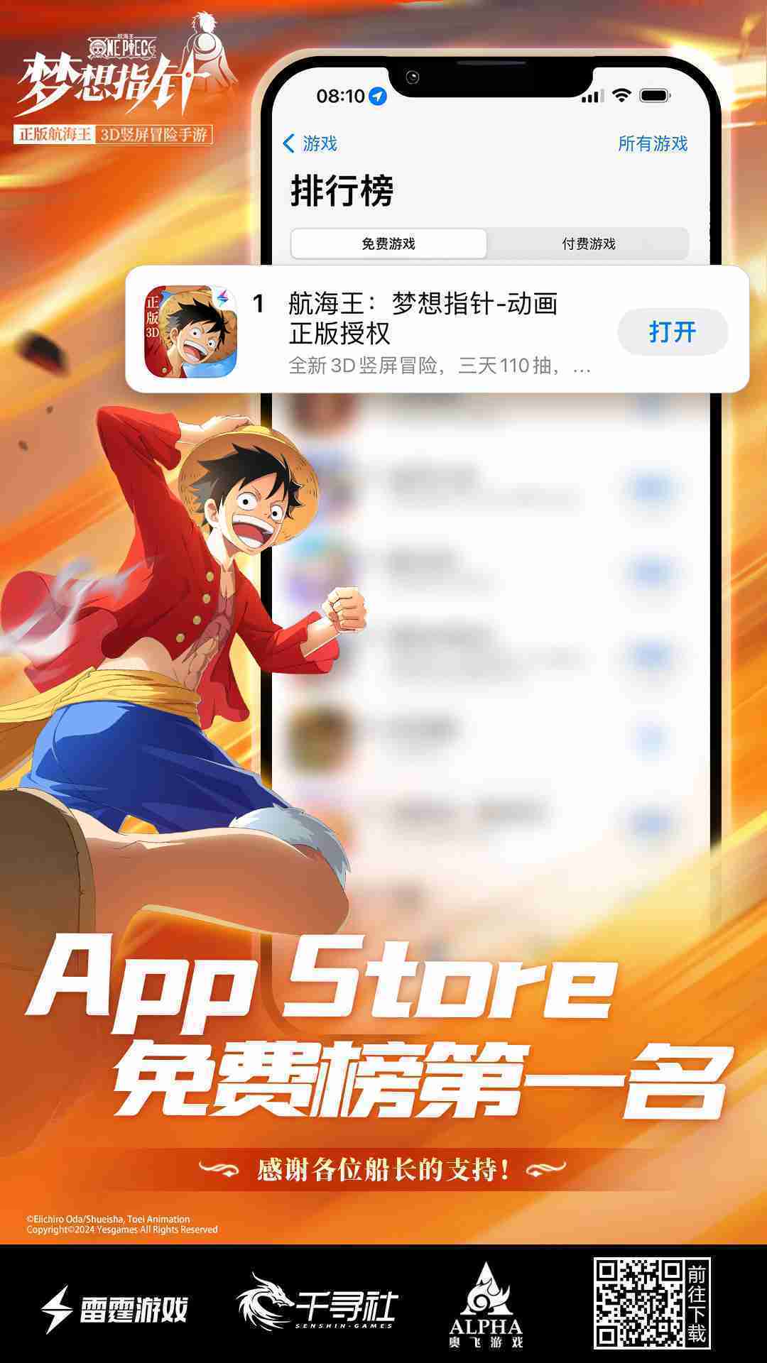 《航海王::::梦想指针》登顶App Store免费榜,,公测福利汇总!!