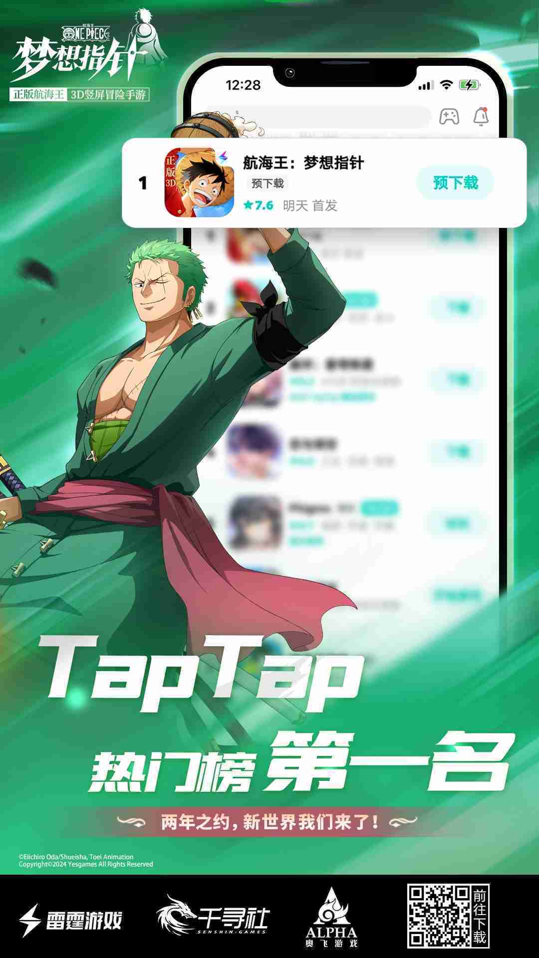 4月1日,,手游《航海王::::梦想指针》正式公测,,上线仅2小时不到就登上了App Store免费榜Top1,,,与TapTap热门榜第一。。。。
