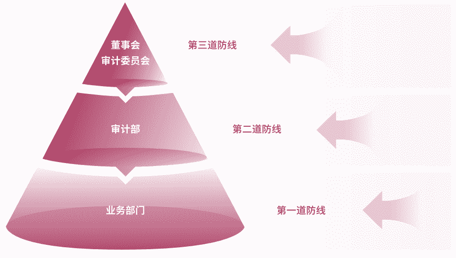 为有效防范贿赂与贪污等商业道德风险,,,公司建立了由“董事会审计委员会、、、、审计部、、业务部门”组成的三道防线,,全面落实公司商业道德合规工作,,,,并确保《商业道德行为准则》的有效执行。。。公司审计部在董事会审计委员会的指导下定期评估、、、、审查公司的合规运营情况及准则的履行情况,,,并对公司及所有子公司开展商业道德行为审计。。。公司保证商业道德行为准则审计工作每三年覆盖公司及其所有控股子公司的全部业务范围。。。