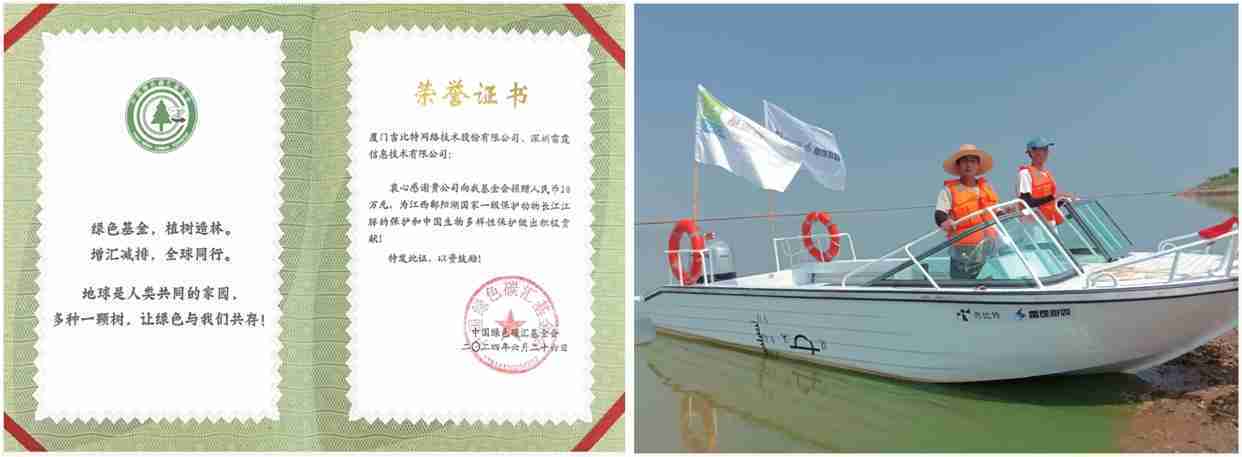 2024年6月,,公司携手中国绿色碳汇基金会,,,开展“保卫江豚”公益活动,,向基金会捐赠人民币20万元用于采购全新巡逻艇,,,,以支持鄱阳湖长江江豚保护工作。。。截至2024年底,,,,公司捐赠的资金与巡逻艇已经有效协助巡护队对鄱阳湖1,667头江豚开展保护行动。。